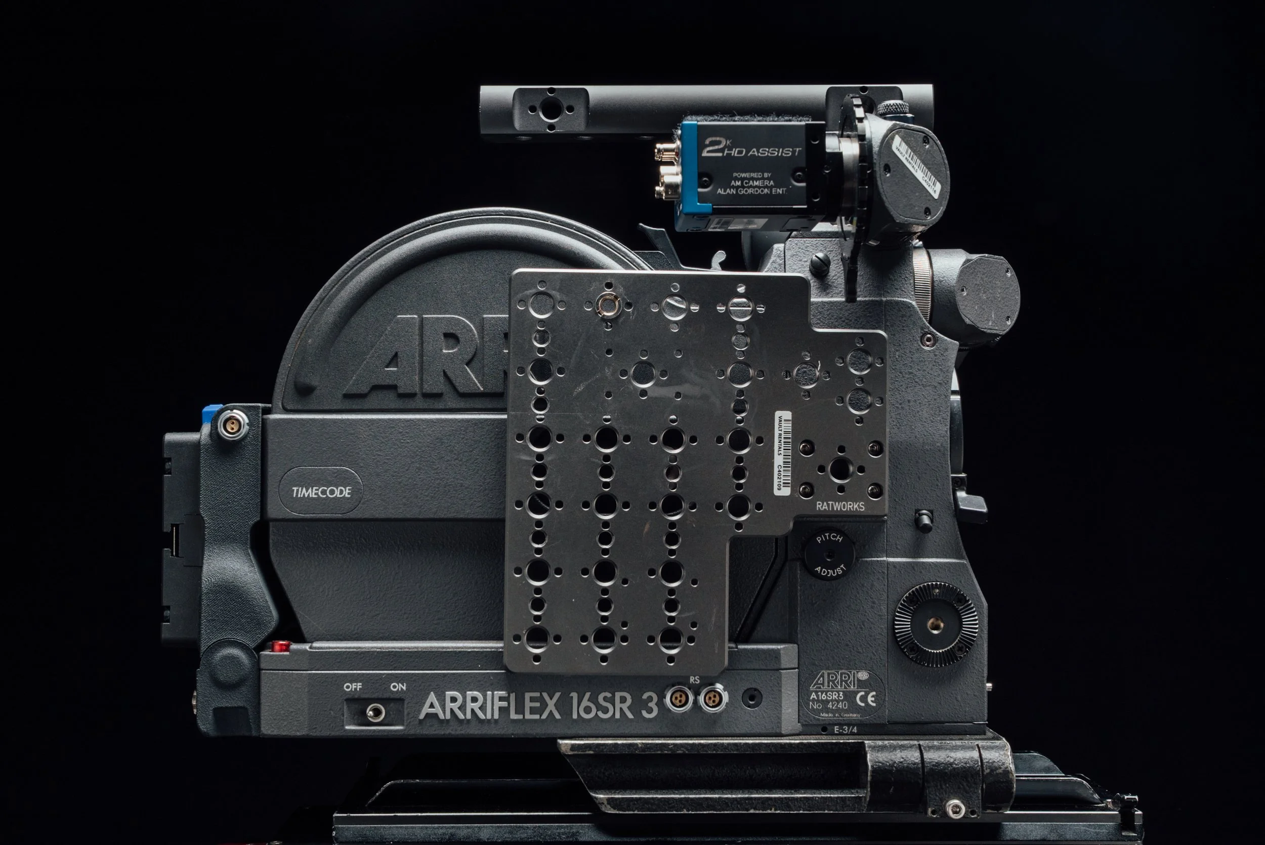The Arriflex SR3 is a compact S16mm camera that features a clear HD Tap Video Assist along with ample mounting options for accessories. This along with a Gold Mount battery plate make this a truly modernized film camera at an affordable price.